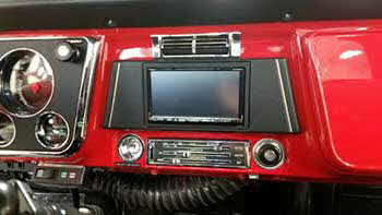 72 Chevy Pickup. Built full custom door panels and dash piece to hold Kenwood double din multimedia receiver. Custom built enclosure for Rockford slim mount subs under bench seat. Also installed Viper security, alarm system with actuators, back-up camera, Rockford amp and component speaker system. Used sound damping on doors and floor.