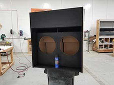 Utah Soccer Bus in for a bass upgrade. Custom built a huge (7.5 cubic foot box) vented to house 2 Rockford Fosgate 15" subs. Enclosure mounted to vehicle with a blow though opening cut into the passenger compartment complete with a grill. Corners of enclosure reinforced with angle steel to stand up to loading of equipment. Powering the subs is a Rockford amplifier with a MESA power cell. This bus rocks!